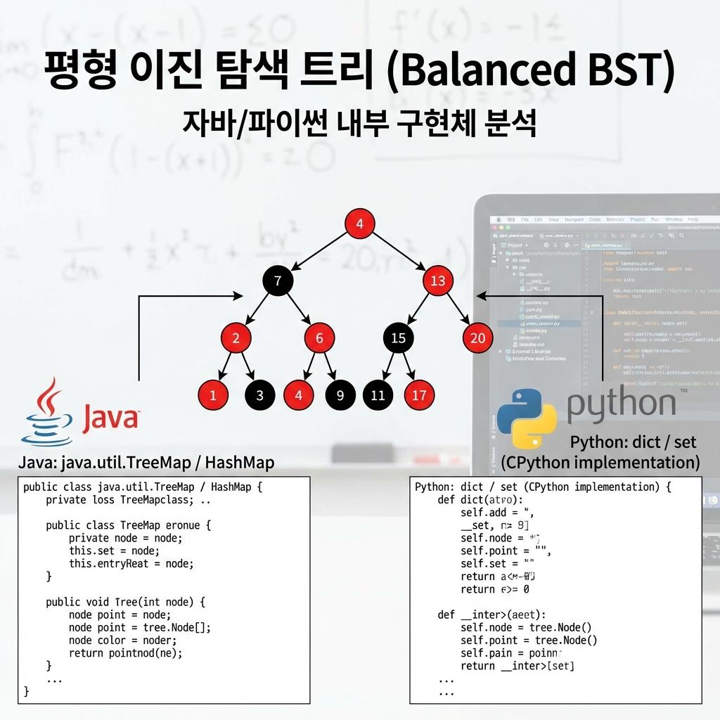 TreeMap과 TreeSet 내부에 정통 레드-블랙 트리(Red-Black Tree)를 구현해 두어, 언제나 자동 정렬과 O(log N)의 안정적인 삽입/조회 성능을 보장합니다.2. 파이썬(Python)의 내장 딕셔너리(